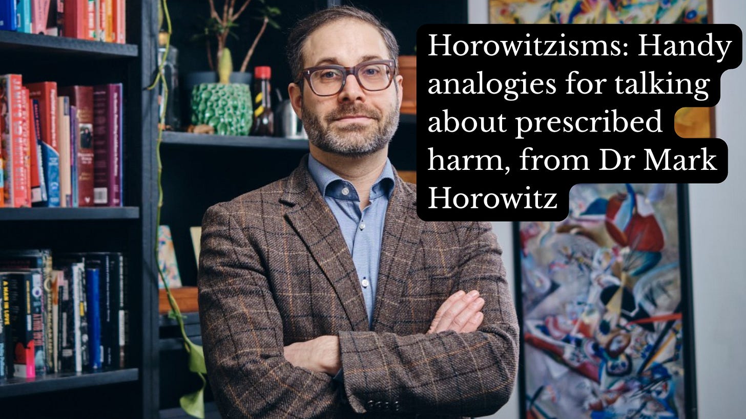 Handy analogies for talking about prescribed harm, from Dr Mark Horowitz
